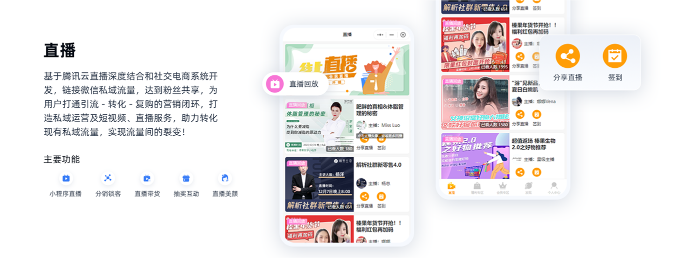 聚焦“新零售”场景,以供应链赋能人货场,链接以消费者运营为核心的全品类,产销协同一体化,搭建业务场景前台+数据交换中台+供应链中台,实现生态内企业互通互联,潜客转化,裂变传播,存量+增量